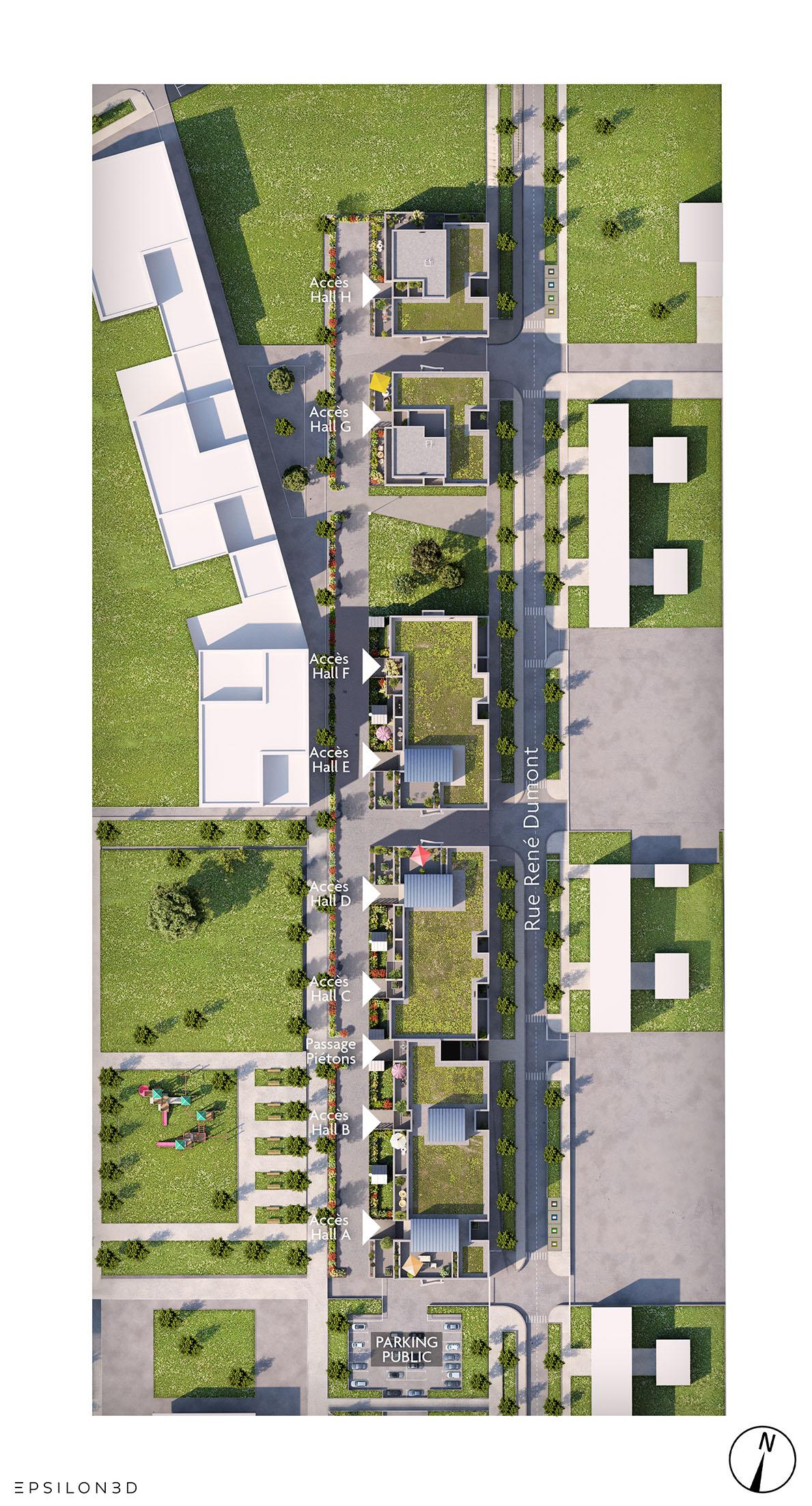 Les 51 logements sont divisés en 4 bâtiments à taille humaine et dotés d’accès sécurisés. Les rez-de-chaussée disposent d’un Jardin, alors que les étages profitent tous de balcons; les duplex bénéficient quant à eux d’un toit terrasse.